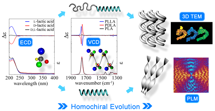 Figure. Homochiral evolution from the self-assembly of chiral and block copolymers and polymers.
