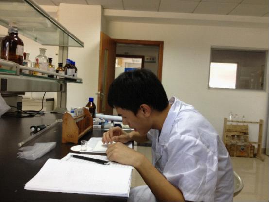 在与各位老师见面之后,我和熊小庆被郭伟斌老师领走,和他一起进行氯雷他定药品中相关物质的检查与含量测定工作。第二周,我和马江飞跟着王玉老师,参与了氯雷他定药品溶出度的测量工作。最后一周,我则独立完成了部分氯雷他定药品主要成分的鉴别工作。