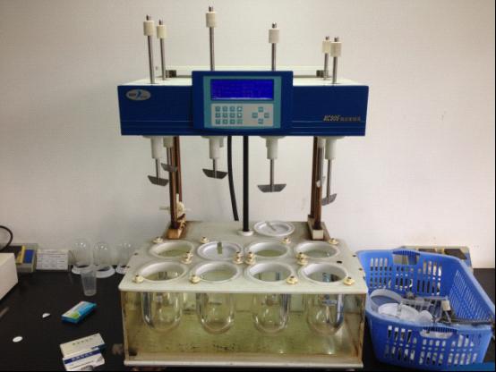 1. 对设备进行调试,篮法和桨法要求篮底距离溶出杯内底部在25mm,左右波动为2mm;小杯法要求桨叶底距溶出杯内底部15mm,左右波动在2mm。