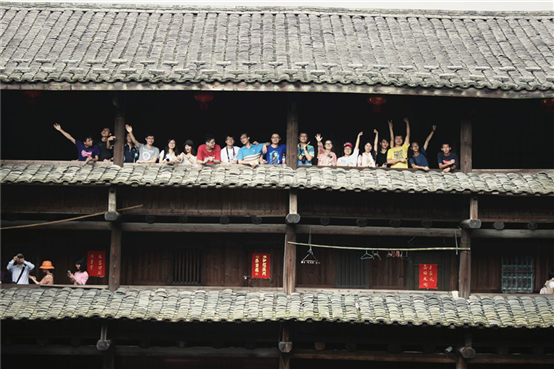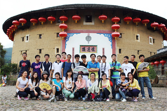 特色活动结束后,我们又继续参观了“圆形”土楼——怀远楼。它是南靖土楼中建筑最精美,保存最完好的圆形土楼。在云水谣留下了第一张大合影后,同学们坐上了大巴车,前往培田的“吴家大院”吃晚饭和住宿。一路上,几乎每个人都睡着了……